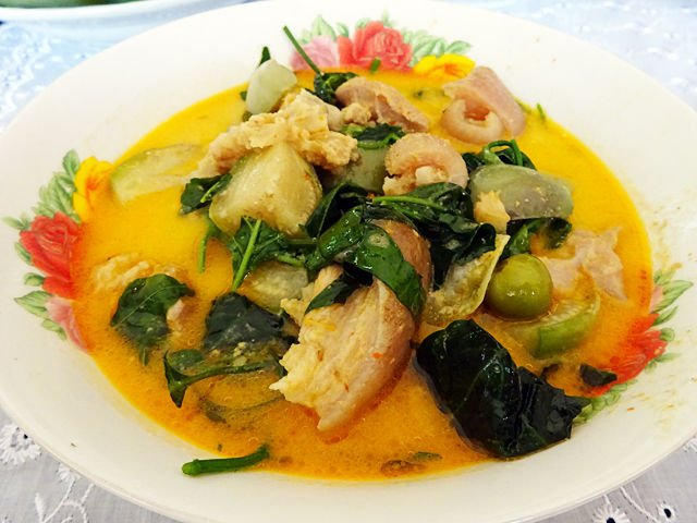 ナムプリック(タレ・ソース)の赤いやつ、レッドカレーみたいな感じで、見た目通りかなり辛くて、でも旨味があってめちゃくちゃ美味しかった!ライスにかけても良し!