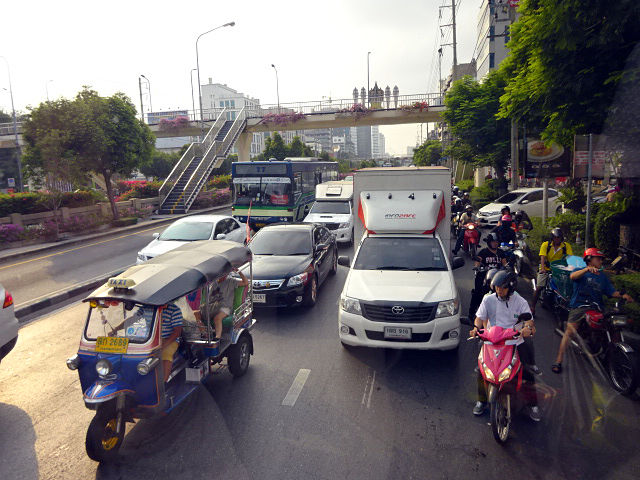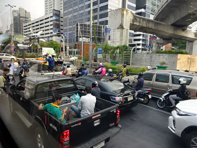 ホテルを出て朝の渋滞ラッシュの中、観光へ出発ーっ