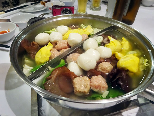 第二段は肉や魚介類がメイン。すり身はお皿に広げられたそれをお玉でスライドさせ投入します!正直、お肉は日本のものの方が美味しいかな(笑)