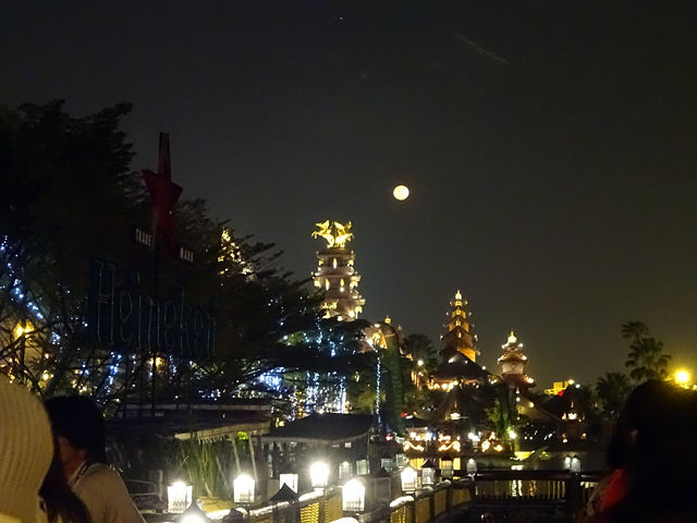 空に輝く月を眺めながら、バンコク最後の夜を楽しみます。