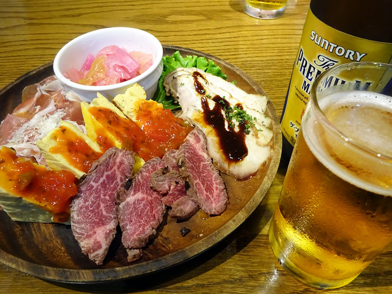 12ヶ月熟成プロシュート、味噌漬けビーフ、生ハムのトルティージャ、店内燻製器で仕上げた自家製ベーコン、さっぱり野菜の浅漬けピクルス