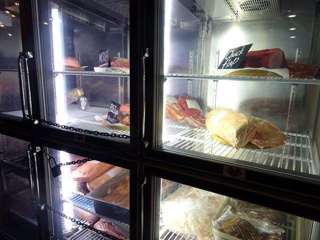 大きな冷蔵庫ではウリである豪快なお肉たちがスタンバイ!