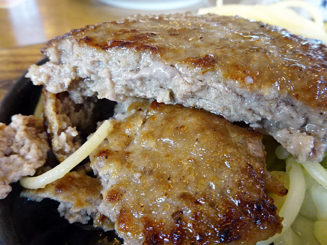 初ハンバーグ!思ったより薄手だったけどwナイフを入れるとジュワッと肉汁が溢れるジューシィさ!外で食べるハンバーグって感じで超美味しいよー!!下味はかなりシンプルなので、胡椒とかソースつけた方がいいな。