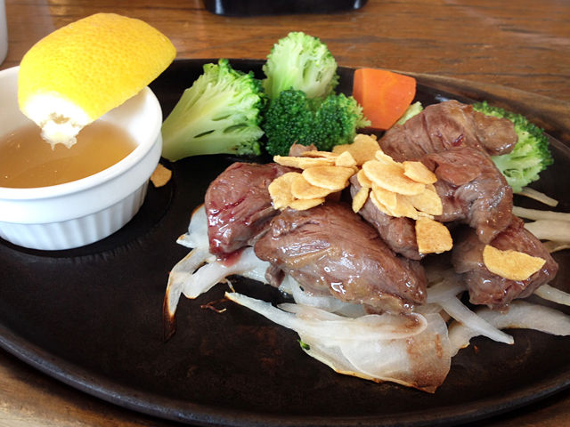 カットステーキ、適度な肉々しさになかなかやわらかくって美味しい!