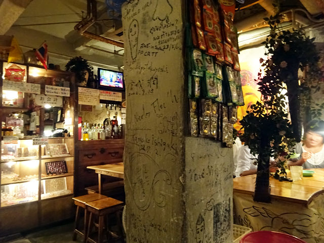 柱には落書きがたくさん。全体的にシンプルだけど、ちょっとゴチャッとした感じがアジアンなイメージを与えます!?