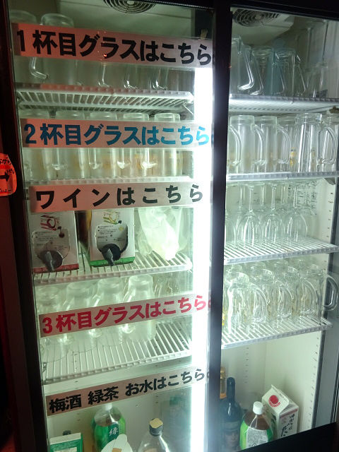 ドリンクは店内奥の冷蔵庫&酒スペースでセルフスタイルね。