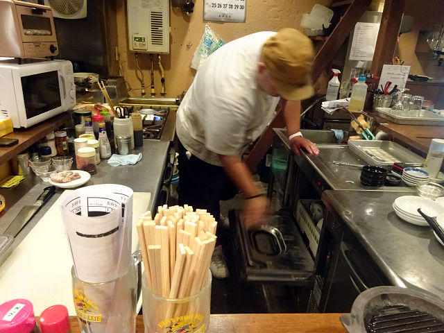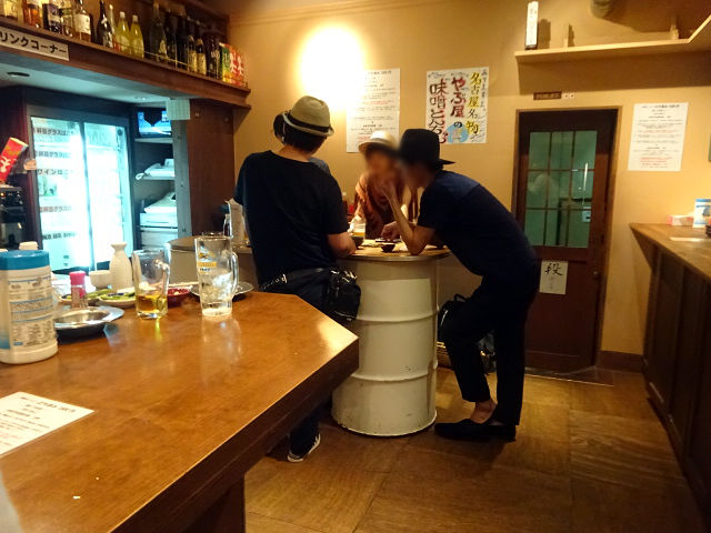 店内はドラム缶を使ったテーブル席に、調理場前のカウンター、壁際のカウンター。狭からず広からず、立ち飲みにはちょーど。