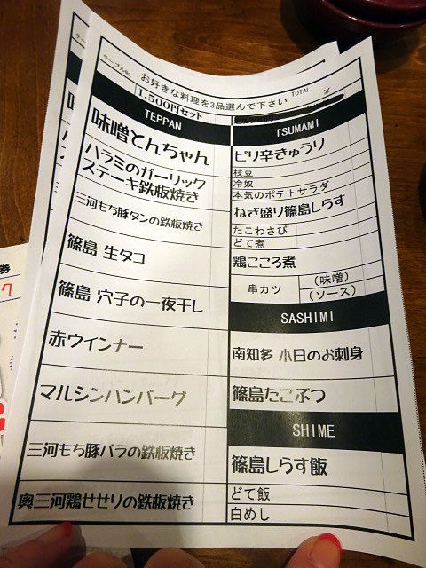 さてメニュー。店名通り、デフォルト¥1500。え?何がって?