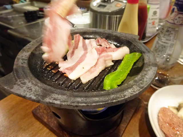 食材サーブとともに、鉄板もサーブ。なるほど、これもセルフね。
