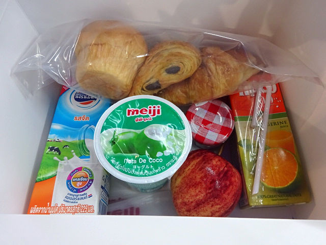 朝早くの出発のため宿泊した「Shangri-La hotel」のお弁当をもらい、わくわくバスで空港へ向かいました。