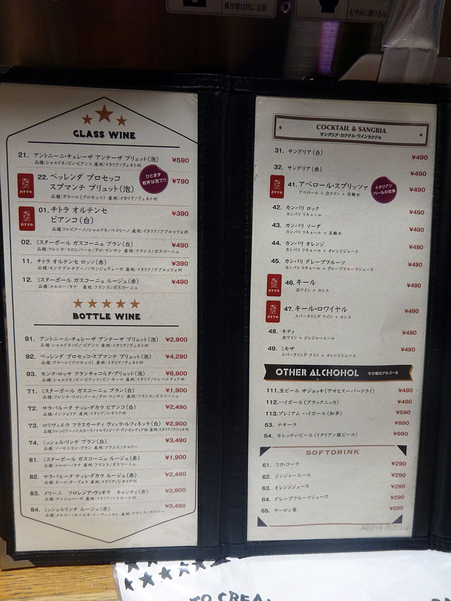 大阪も色々ありますが、意外とスタンディングのイタリアンバルって少ないかな?