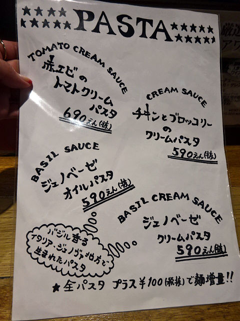 メニューは手元ブックと手書きの用紙にて。