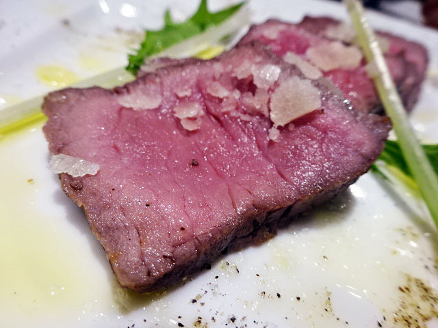 牛肉のたたきはホンマに赤ワインと最高!ロシア風のポテサラとオリーブも美味しかったですね!!