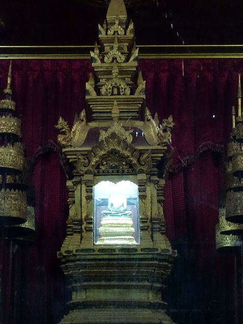 『スイカの中から翡翠の石が出てきたことを有り難がり、その石で仏さんを作った』というストーリーのあるエメラルド仏が飾られています。