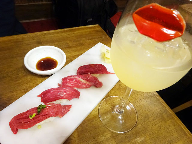 ウリの肉寿司の美味しさはもちろんのこと、個人的には馬肉やホルモンを使った酒の肴にピタリな個性的な一品が超ツボ!ほんと、コレだけでも食べにくる価値あり!ぃや、寿司も食べてほしいけど(笑)
