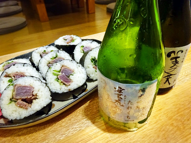 かつおのたたきが入った巻き寿司!日本酒に合う〜うまい〜