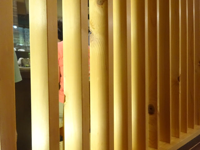 テーブルフロアはブラインド?的な仕切りで区切られますが、私たちが座った席は隣近所さんとの間の仕切りができず、かなり