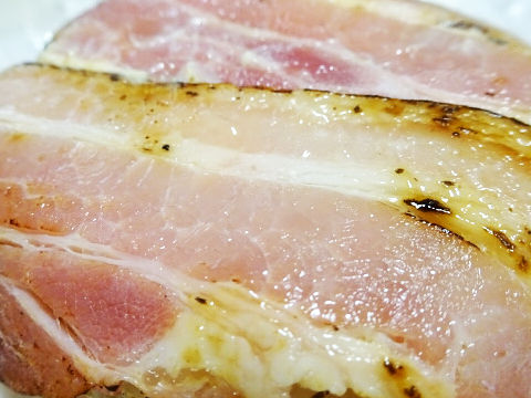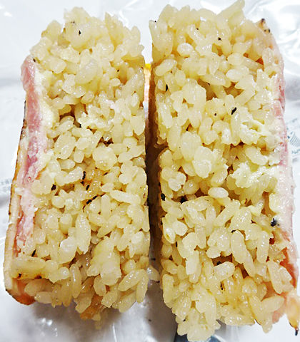 薄切りのベーコン2枚ほどでご飯を覆い隠します。
