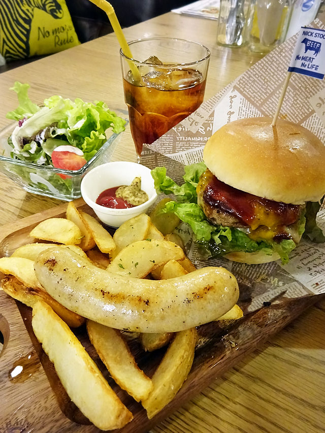 「全メニューにライス・サラダ付き」ですが、さすがにバーガーにはライスは付いてきませんでしたよ、念のため(笑)