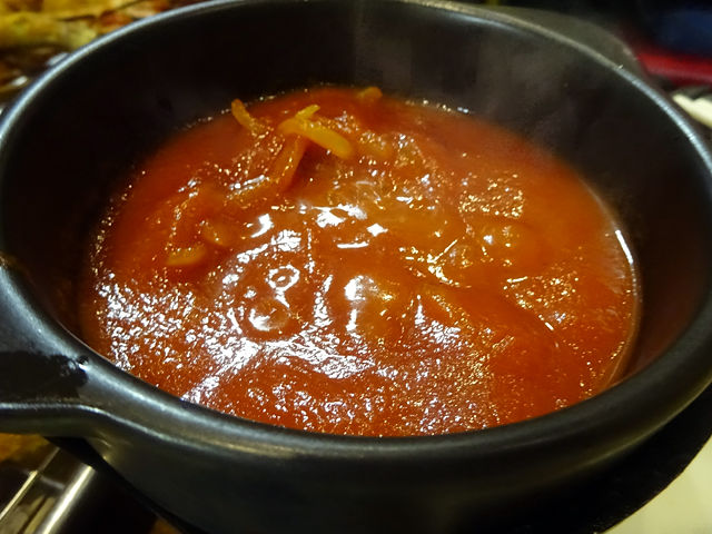 定番通りソースで頂いた後は、別添えソースでイタリアンに変身!
