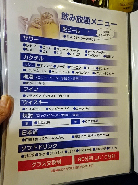 メニューは手元ブックにて。定番から創作まで50種以上揃う串かつをメインに、スピード一品、お造り、サラダ、揚げもん、〆もん、デザート…そして新たに加わったイタリアンと、オールマイティなラインナップ。各種食べ飲み放題コースも充実し、シーンによって使い分けができそうです。