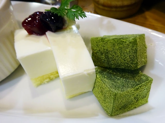 抹茶のワラビもち、レアチーズケーキ