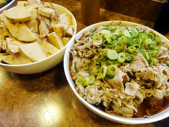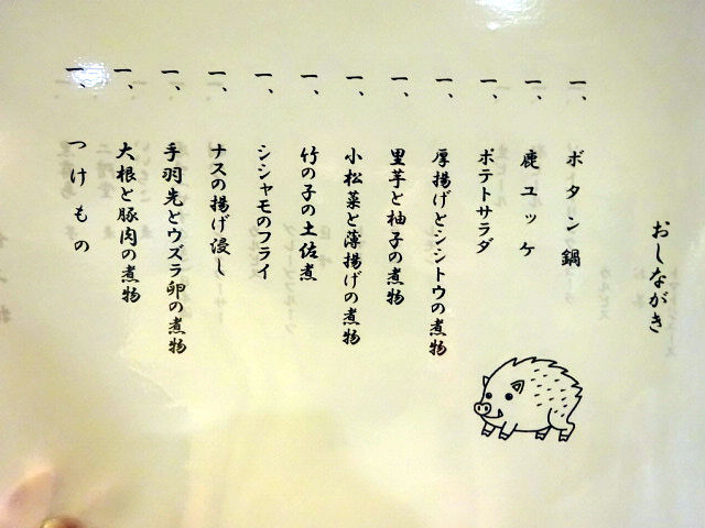 同じくお店の名物。旨い猪肉を味わいつつ、さらなる逸品もつまむ。