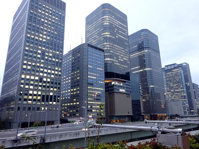 ビアガーデンにしては5Fとちょっと低めだけど?さほど低さは感じません。オフィスビルが建ち並ぶ景観、悪くないね。