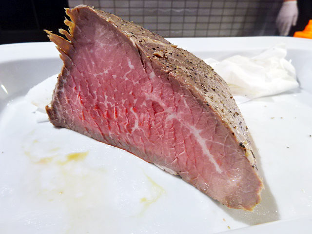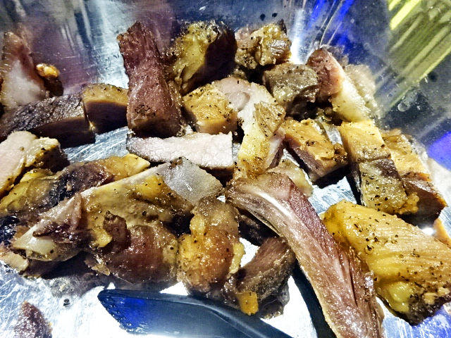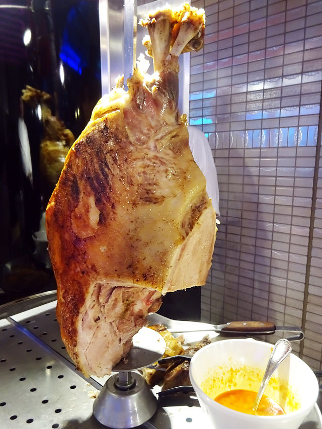 たっぷり切り分けてもらえる、骨付き豚もも肉の丸焼き