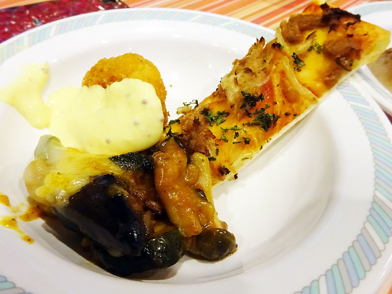 ピザ、グラタン風、フライもん。だんだん盛りつけがザツになるw