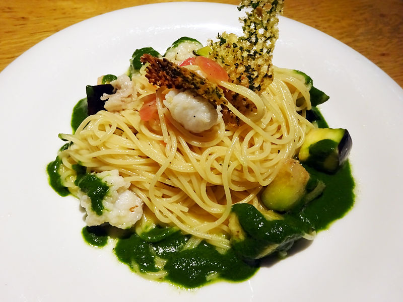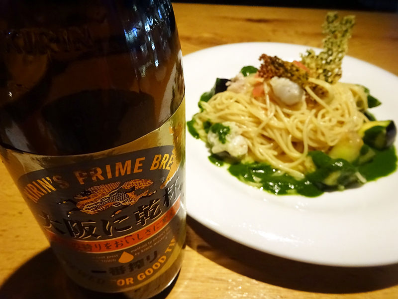 一番搾りとパスタ。考えたことなかった組み合わせだ〜