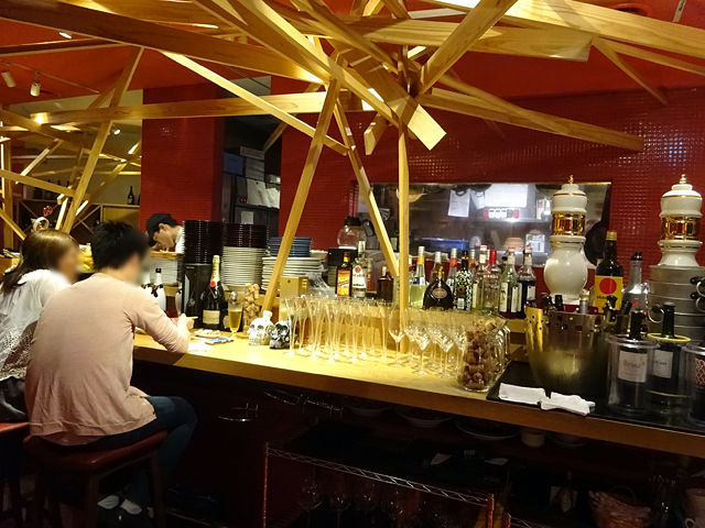 情熱の国スペインにふさわしく赤を基調としたオシャレバル。