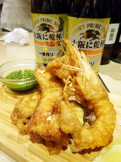 キリン一番搾り 大阪に乾杯 中瓶+春菊のジェノヴェーゼソースとシーフードのフリットミスト
