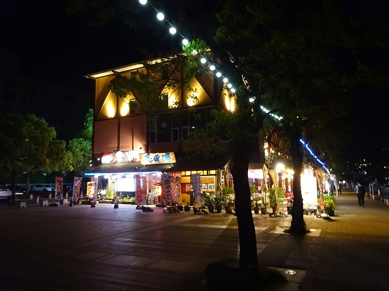 長崎港周辺のベイエリア、海辺に面して広がる、レストラン、居酒屋などの飲食店、美容室、ショップなどが入る複合商業施設。