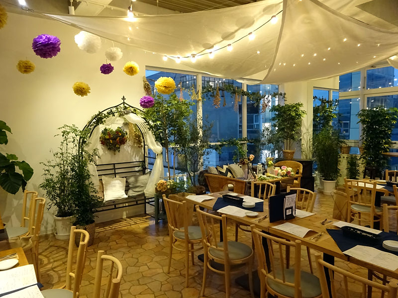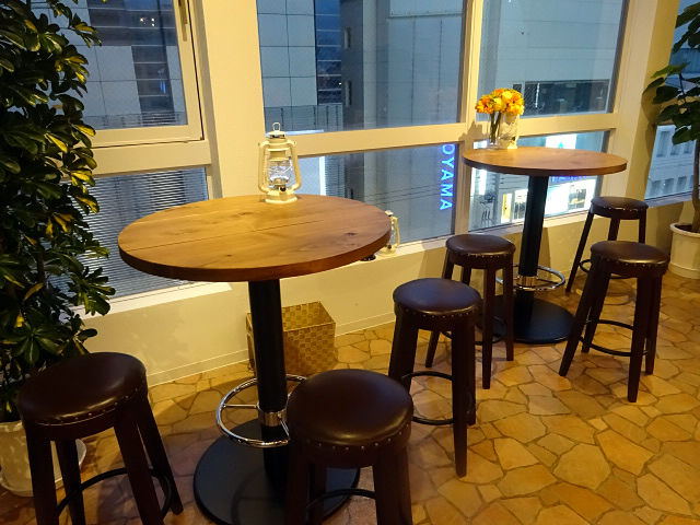 窓際のテーブルソファ席に、半個室のテーブル席。
