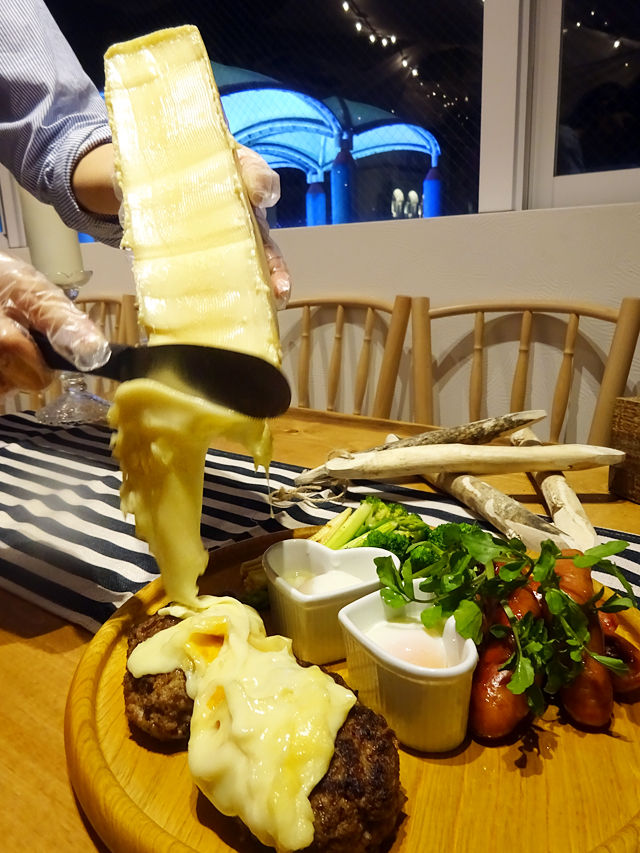 目の前で熱せられたチーズをたっぷりかけて!濃厚な香りが部屋中に広がります!チーズ好きにはタマラナイ〜〜っ!!