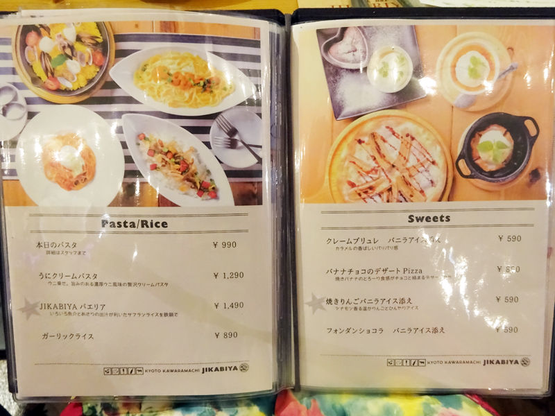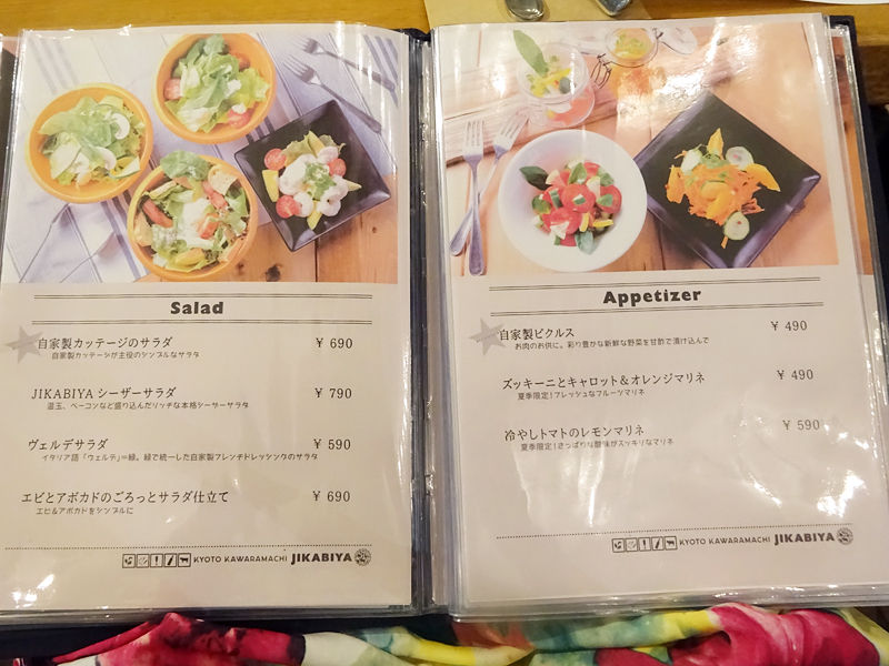 メニューは手元ブックにて。先述通り、肉とラクレットをメインに、サラダ、一品、ピザ、パスタ、スイーツなどが揃います。(詳細は記事最下部にて)