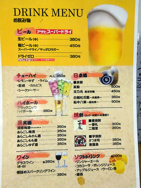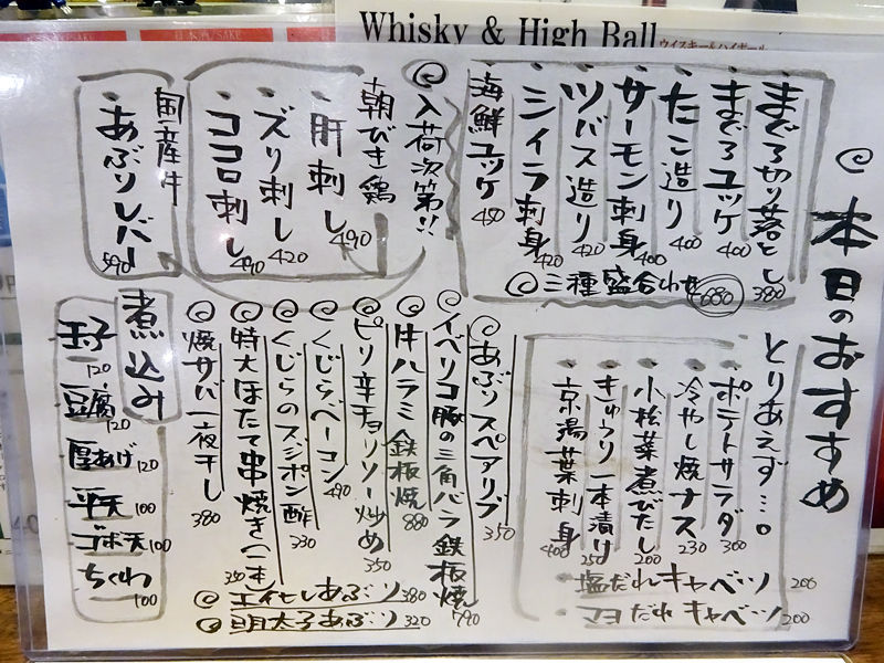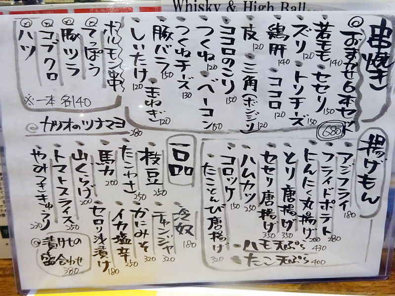 こちら、同じく河原町の立ち飲み「もみじ」の姉妹店だそう。なるほど〜。言われてみれば何となくメニューの感じが似てるかな?