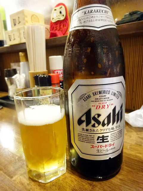 まずは中瓶¥450でひとり乾杯〜っ