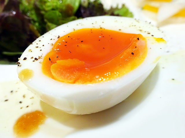 絶妙半熟加減が嬉しい!アンチョビの旨味塩気にマヨのこってり感、ピリッとブラックペッパーがナイスアクセント。これ絶対みんなスキ!