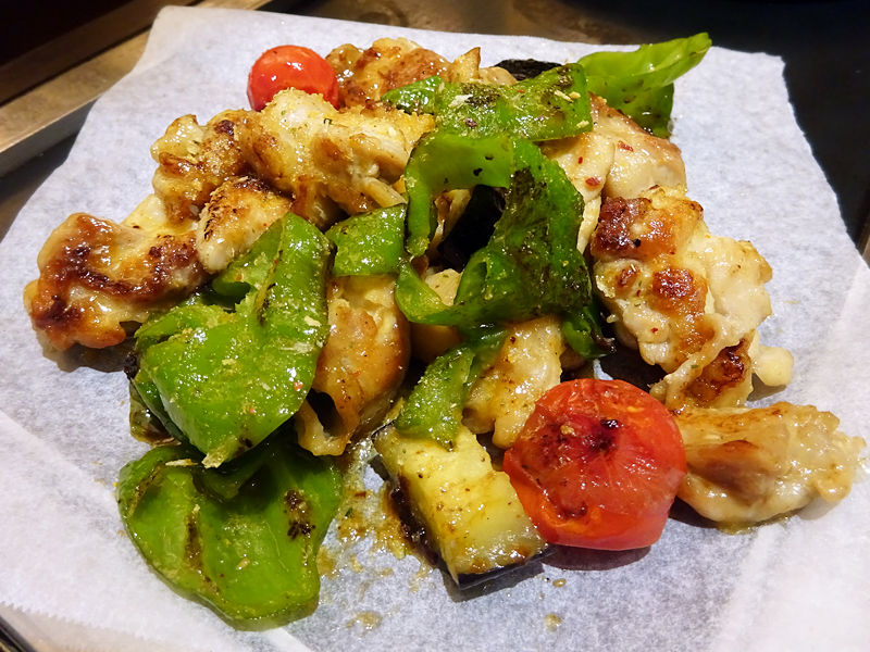 そしてまた温菜。プリリッと仕上がった鶏に、お味噌の深い味わい。焼いた万願寺とうがらしもまた甘くて美味しい〜っ。コレは酒の肴にも白飯にも合う!(笑)