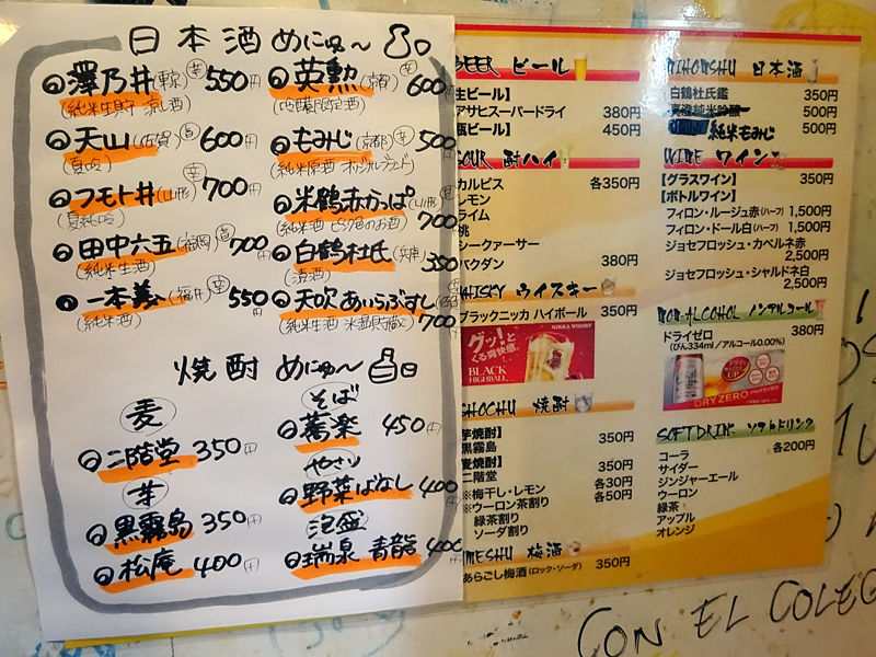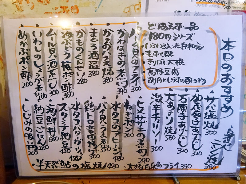 メニューは手元パウチとホワイトボード、その他壁にもアレコレ。