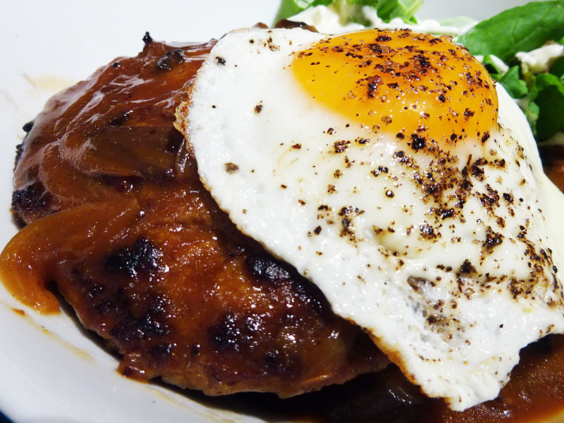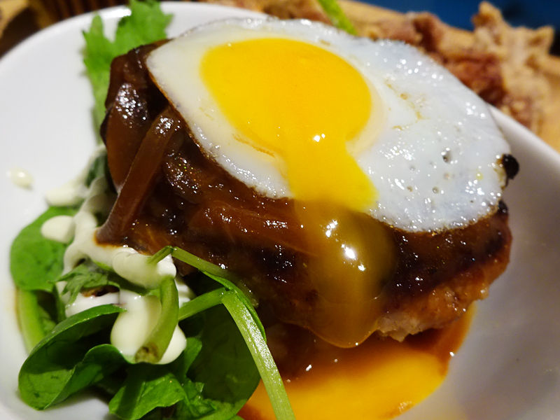 ハワイと言えば!のロコモコ。選べるソースは2種で、グレービーソースをチョイスしました。(もひとつはテリヤキソース)