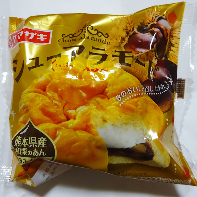 原材料:小麦粉、マロンあん、ミルククリーム、卵、糖類、ファットスプレッド、マーガリン、栗甘露煮、発酵風味料、パン酵母、小麦繊維、食塩、植物性たん白、植物油脂、ソルビット、‥