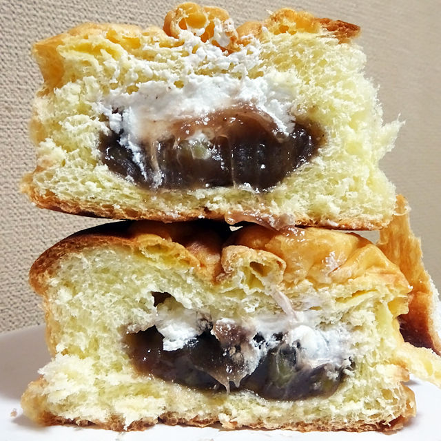 フィリングも良い入りっぷり!とろっとみずみずしさもある餡に、コリリ栗粒が良いアクセント。適度な甘さにふんわりホイップで和洋折衷。安定の美味しさです〜