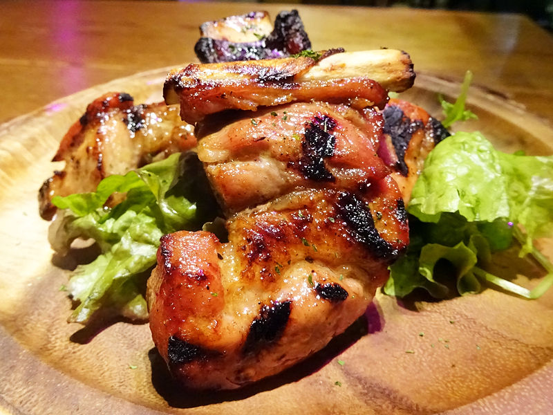鶏は骨付きもも肉。それぞれ、オークチップ、リンゴチップで。チップにより色も香りも全然違うの!おもしろい〜