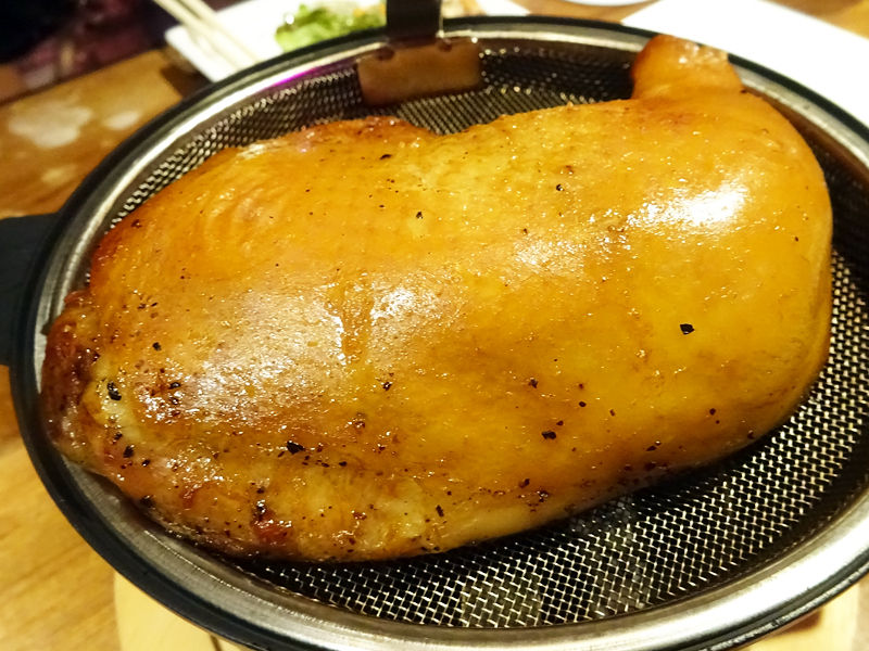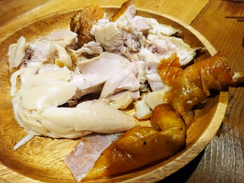ハサミでチョキチョキ切り分けていただきます。しっとりやわらかジューシィで噛むほどに燻製が香ってめっちゃ美味しいーっ!