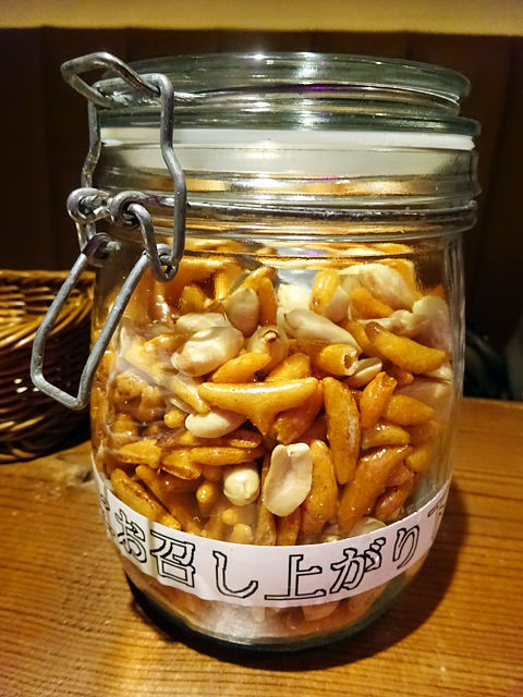 スタンバイする柿ピーはチャージ¥350で食べ放題です♪
