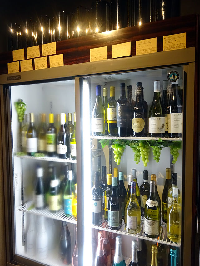 そしてもうひとつのウリ、ワイン!「KURA(くら)」には60種150本以上のワインが並びます!ワイン好きにはたまらない〜っ