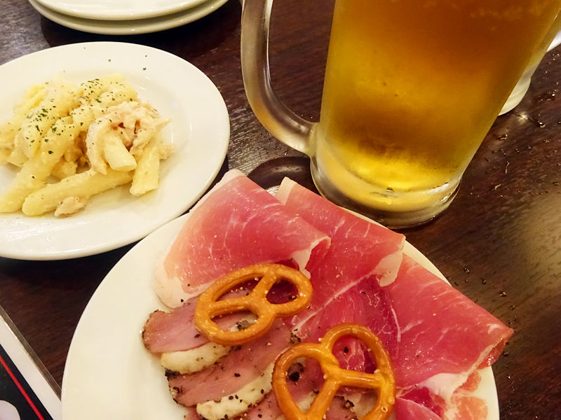 最初はソファ席に行ったのだけど、カウンターだとビールがお得になる!ってことで、そちらに移動(笑)